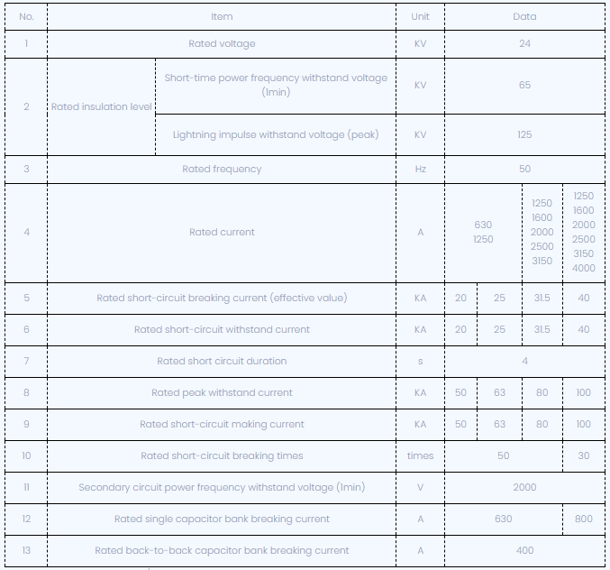 O disjuntor de vácuo CT68-24 possui estrutura simples, alta capacidade de ruptura, resistência longa, funções operacionais completas, sem perigo explosivo e manutenção conveniente. É adequado para controlar o sistema de transporte e proteger o Switch em Powerhouse e a subestação trans, especialmente adequada para quebrar carga importante ou operações frequentes em alguns lugares.