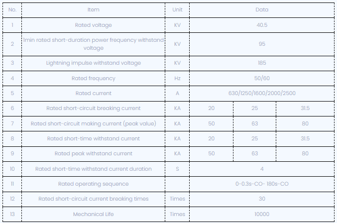 Conformidade com padrões:Meets IEC 62271, GB/T 1984 e ANSI C37.04.