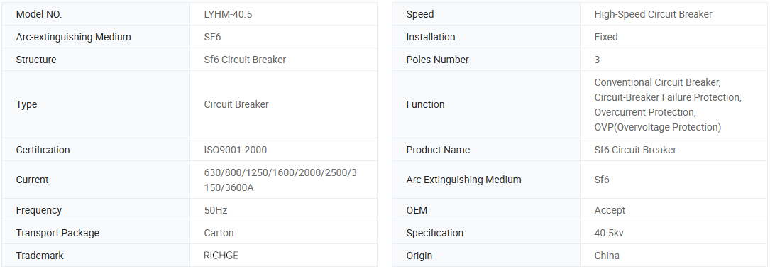Lyhm Series de reivindicação de gás SF6 da série SF6 Use o gás hexafluoreto de enxofre (SF6) como meio de extinção e isolamento de arco. O gás SF6 possui características de quebra suave, nas quais o fenômeno sem corte ocorre quando quebra a corrente operacional e nenhuma revolução operacional é gerada. Essa excelente característica garante que o disjuntor tenha uma longa vida elétrica. Não tem impacto no choque, nível dielétrico ou tensão térmica do equipamento durante a operação. O pólo do disjuntor, ou seja, a seção do interruptor, é um sistema fechado sem manutenção para a vida. A vida de vedação está de acordo com o IEC 62271-100 e o CEI17-1. O processo de abertura/fechamento dos disjuntores da série LYHM é realizado pelo atuador da mola do tipo Reh. A construção compacta do disjuntor garante que seja robusta e confiável.