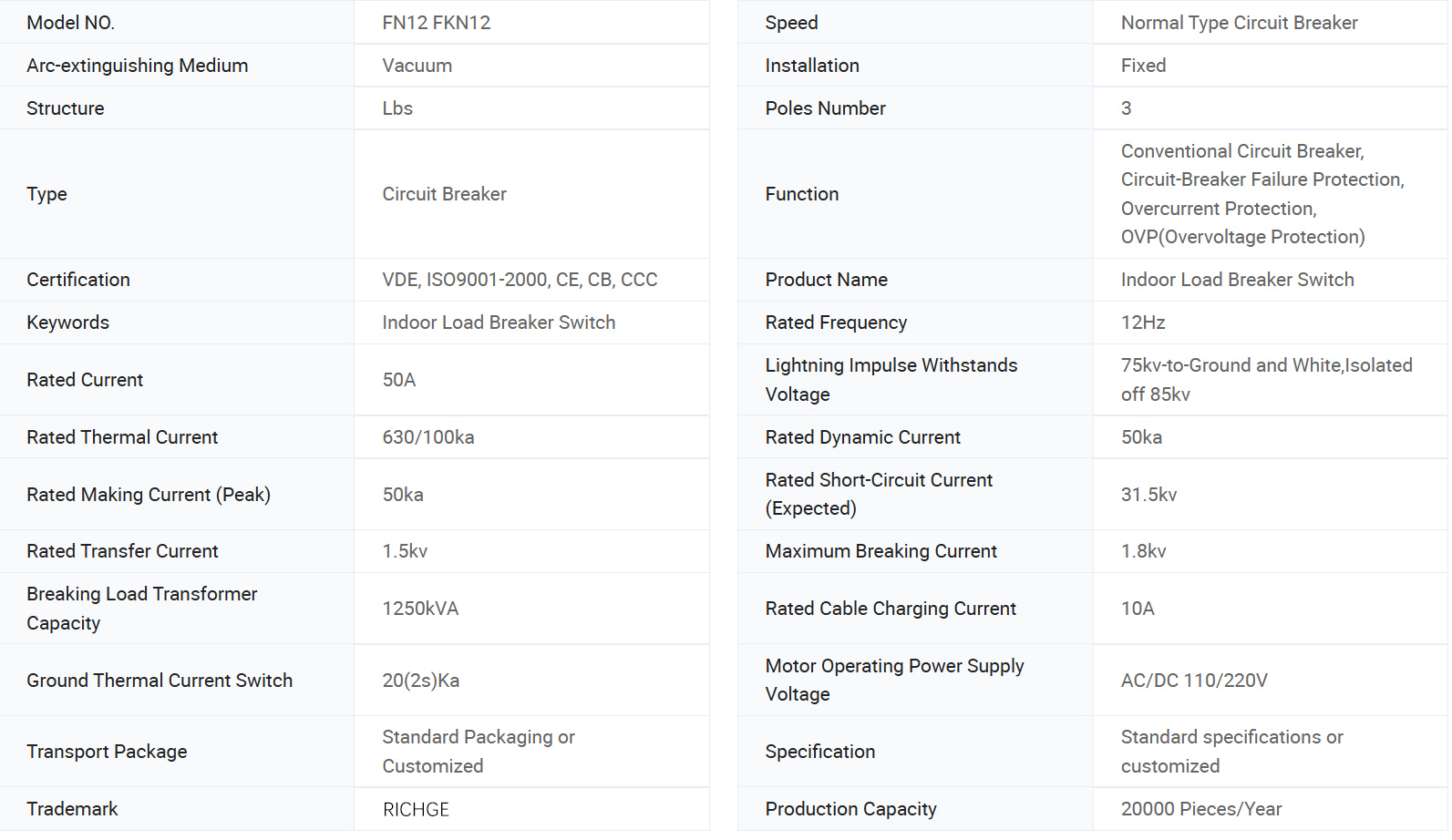 Model:FK(R)N12-12D