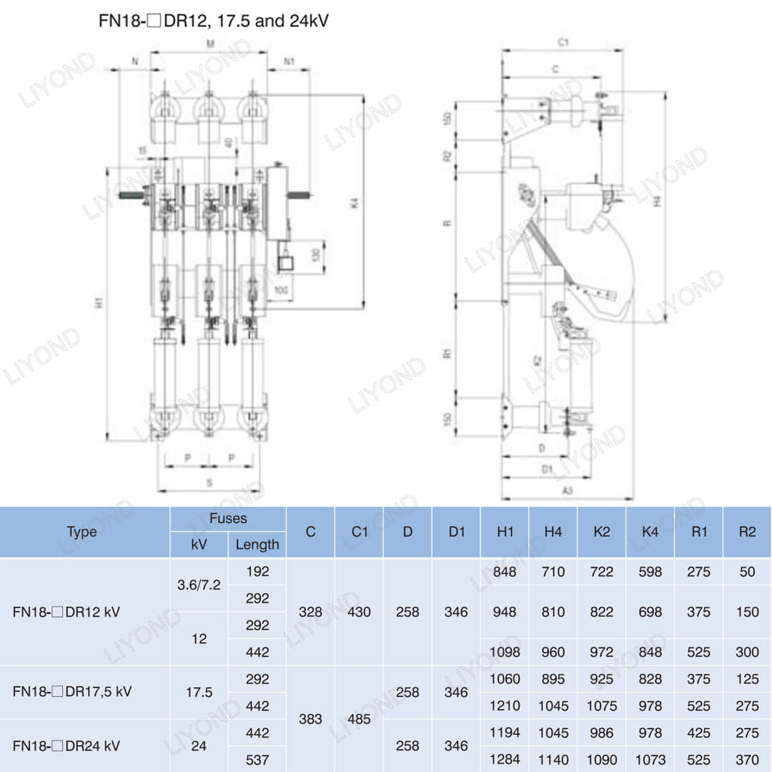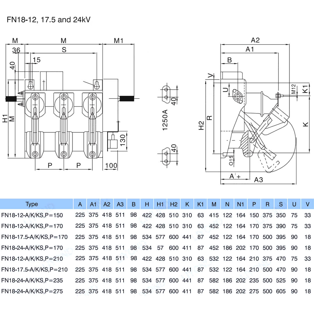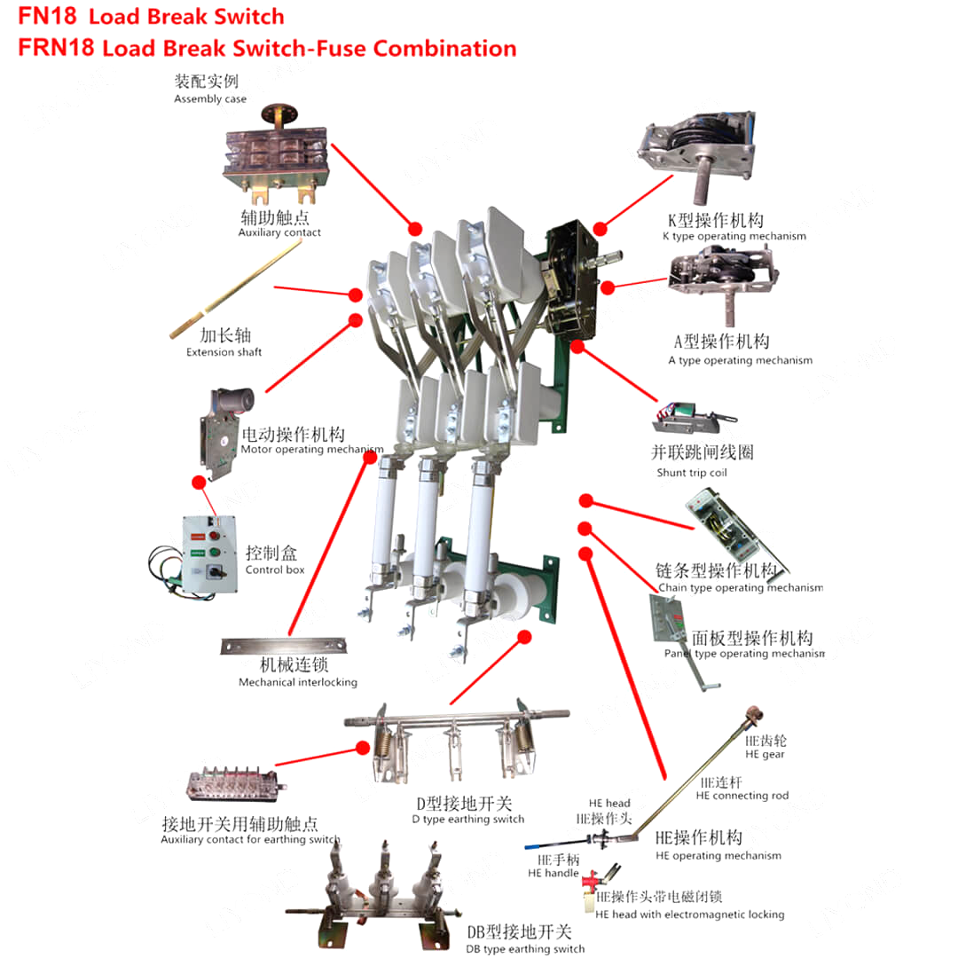 FN18 Série de alta tensão interna de alta tensão tem as vantagens de design fácil, operação, estrutura compacta, pequeno volume, função completa, peso leve, velocidade rápida de quebra e fechamento e alta confiabilidade. É adequado para CA 50Hz, tensão nominal de 12kV, 24kV, sistema de distribuição de 630A e três fases classificado, especialmente para projetos de construção e renovação de redes da cidade, arranha-céus, fonte de alimentação de rede de instalações públicas e é um produto ideal para a proteção de subestações e transformadores do tipo caixa.