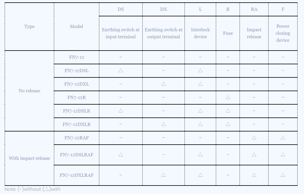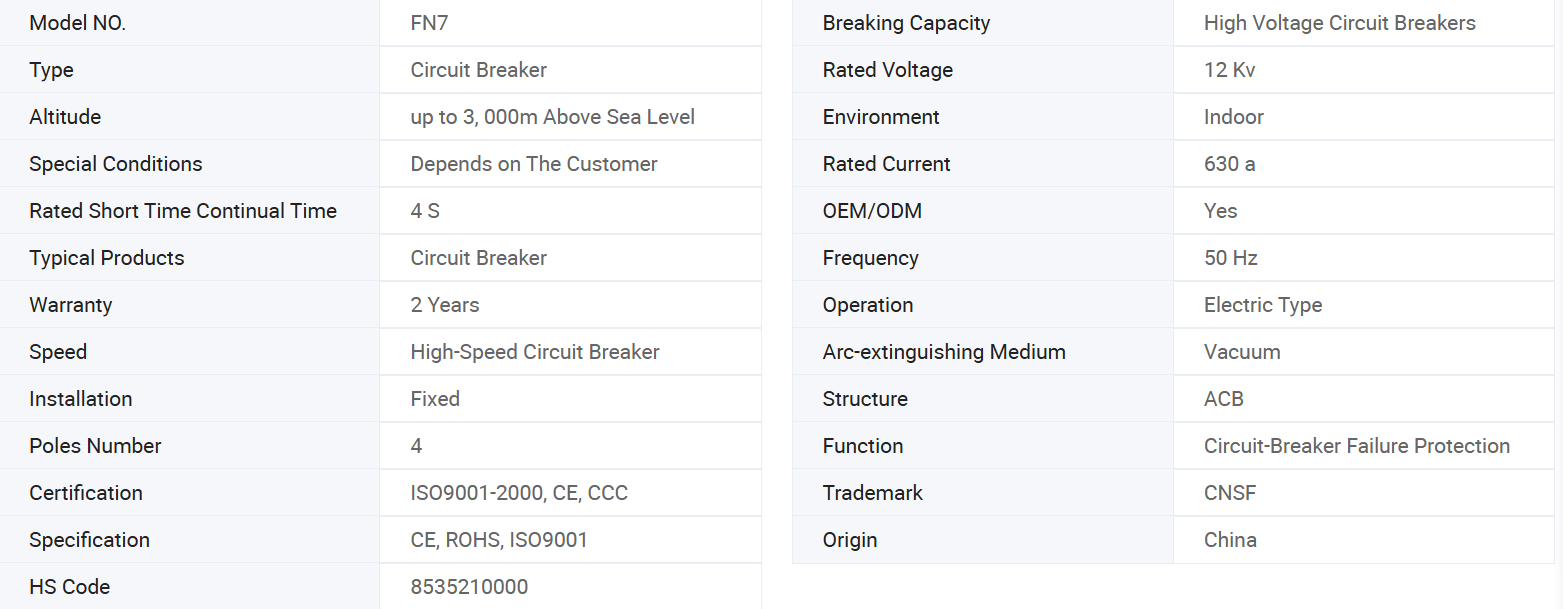 O interruptor de quebra de carga da série FN7, geralmente vem com o mecanismo de mola para ligar e desligar o suprimento; no entanto, a opção com disjuntor de vácuo também está disponível. Obviamente, a opção com disjuntor de vácuo é mais caro. A escolha entre esses dois depende totalmente do cliente. O interruptor de quebra de carga com disjuntor de vácuo é mais confiável.