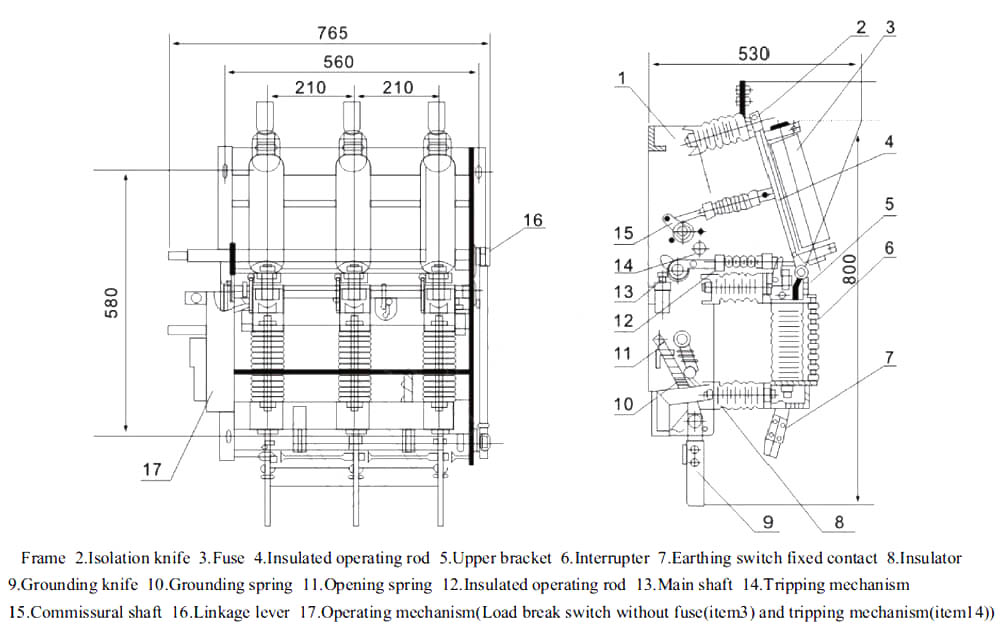 Este produto possui estrutura compacta, pequeno volume, vida longa, forte capacidade de fechamento e ruptura e fácil operação e manutenção. O interruptor de vácuo está equipado com um mecanismo operado pela mola, que adota um motor de mola elétrico (outro manual), e há dois tipos de métodos de fechamento: fechamento e fechamento manual de eletroímã. O interruptor de desconexão, o interruptor de vácuo e o interruptor de aterramento estão intertravados entre si (intertravamento mecânico) para evitar a mossooperação.