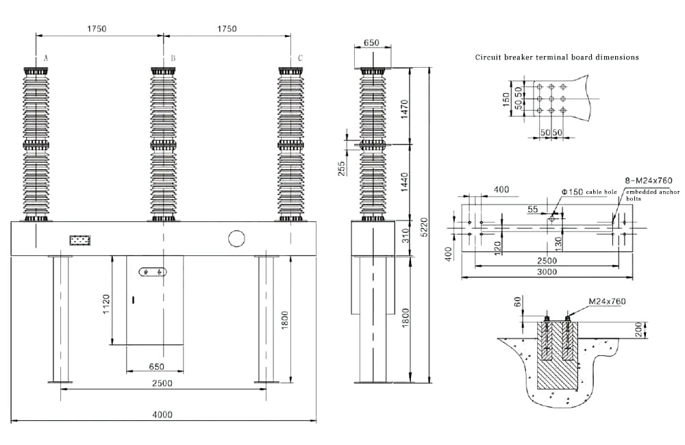 O disjuntor adota uma estrutura de quebra única de coluna de porcelana trifásica. As três fases estão equipadas com um mecanismo de operação da mola, que é organizado centralmente e operado trifásico, portanto a aparência é nova e requintada. O disjuntor usa o gás SF6 como meio de isolamento e extinção do arco. Durante a operação, o gás SF6 de três polos do disjuntor é conectado e um relé de densidade do tipo ponteiro é usado para monitorar seu progresso de pressão e densidade. Devido ao princípio de extinção de arco de auto-energia e ao projeto otimizado no sistema de movimento do disjuntor, a eficiência mecânica é efetivamente melhorada e o trabalho operacional é minimizado;
