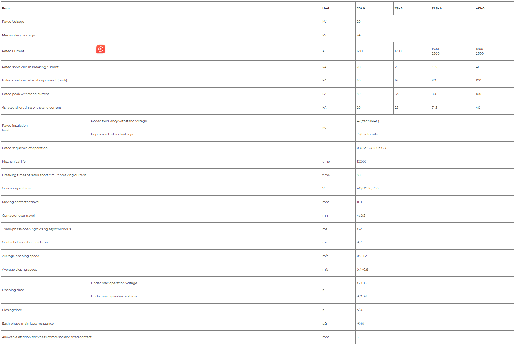 A série VS1-24 de disjuntor de vácuo de alta tensão interna com pólos incorporados é de três frases a.c.50 Hz de equipamento de distribuição de energia interna com a tensão nominal de 24 kV. É usado para proteger e controlar o equipamento elétrico nos campos da indústria e da empresa de mineração, usinas de energia e subestação. O principal circuito condutor desse tipo de disjuntor de vácuo com mecanismo de mola é incorporado, que pode melhorar bastante a confiabilidade do isolamento, desempenho mecânico e de quebra e realmente percebe a manutenção livre e a vida útil mecânica e elétrica mais longa. A capacidade atinge o grau de M-E2-C2.O produto é usado para muitos tipos de equipamentos de comutador, como o KYN28-24 (GZS1) e pode ser instalação fixa.