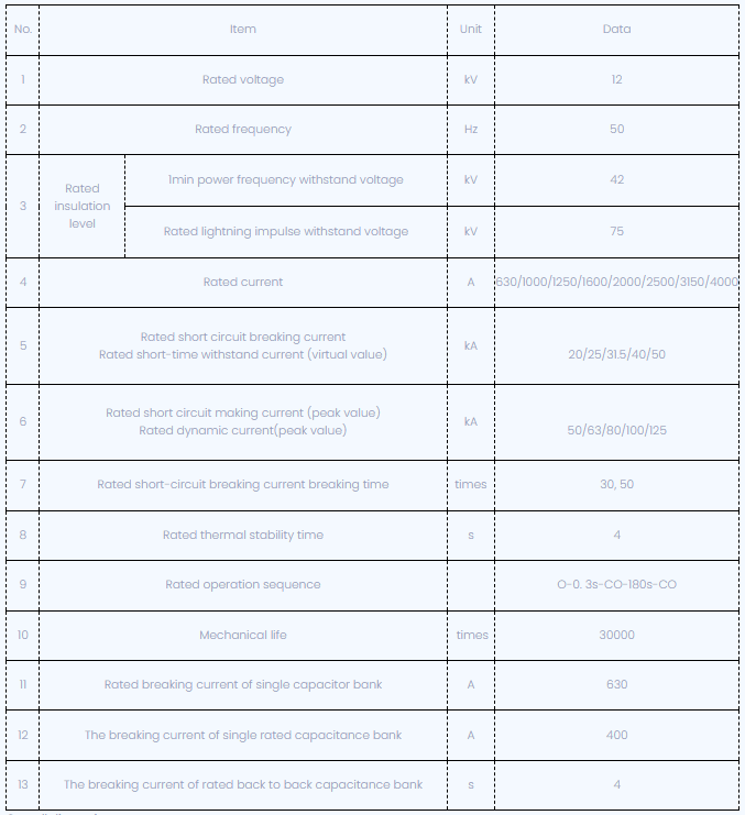 Parâmetros técnicos de vsg-12 1600A VCB Tipo fixo Pólo sólido