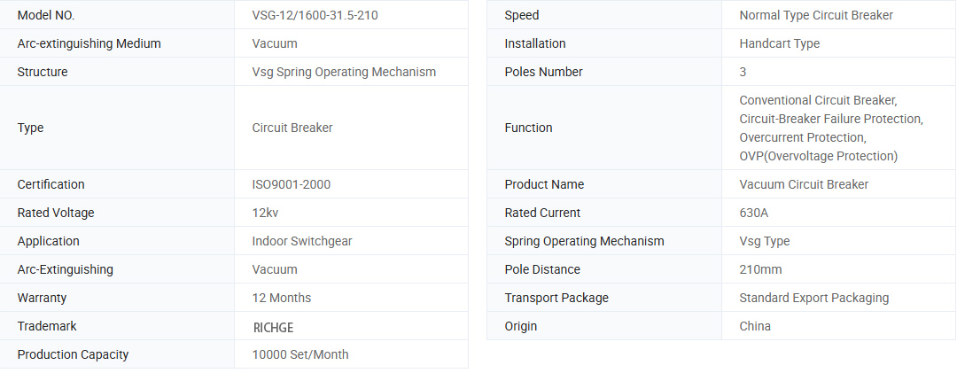 VSG-12 Tipo de alta tensão de alta tensão VSG-12 Disjuntor de vácuo usou mola para armazenamento de energia. The operating mechanism can be operated by two ways, by manual and electromotive operation, The characteristics is according with GB1984-2003 High Voltage AC Circuit Breaker, JB3855-1996 3.6-4.5KV Indoor AC High Voltage AC Circuit Breaker and IEC standard 62271-100:200162271-100:2001 High Voltage AC Circuit Breaker