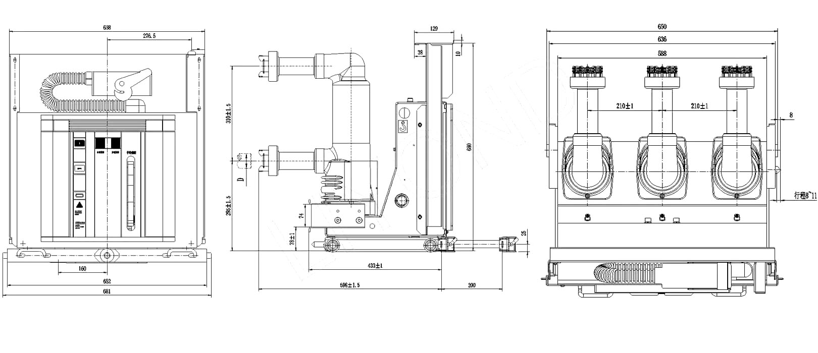 Dimensões do disjuntor de vácuo do tipo de mão de mão VSG-12/2000A com pólo fixo