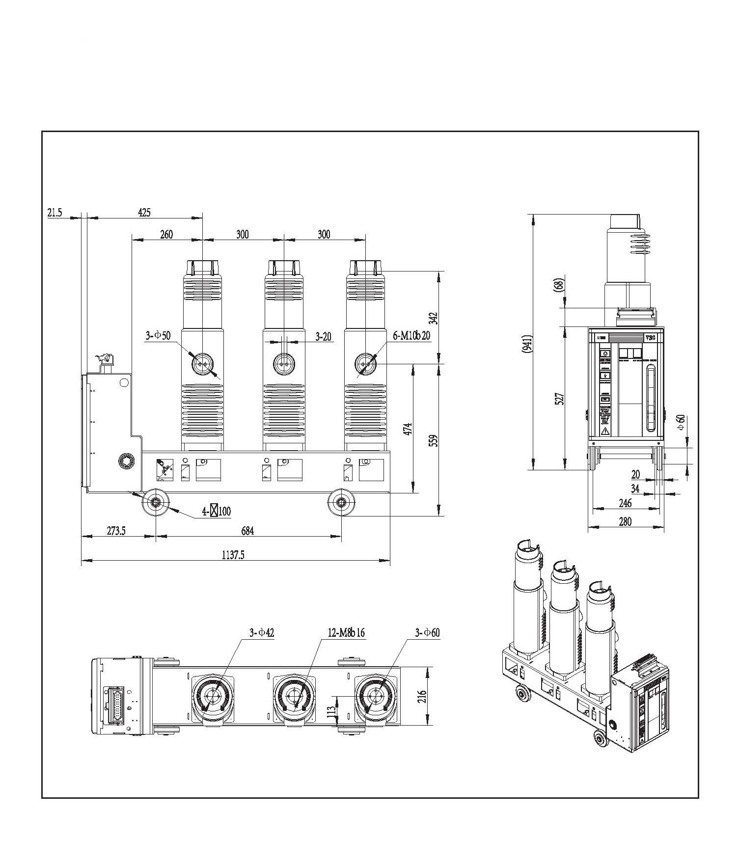 VSG-40.5C Incorporado a pólo lateral do disjuntor de vácuo interno