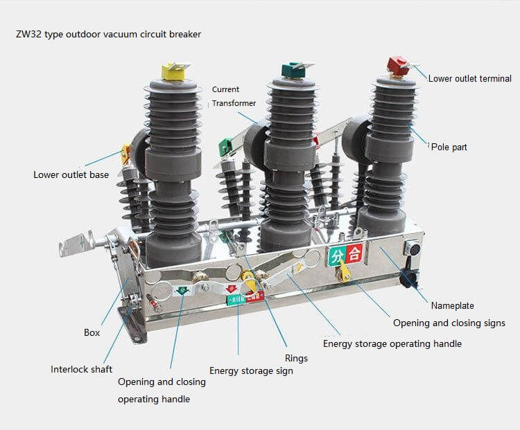 O disjuntor de vácuo ao ar livre ZW32-12 (a seguir referido como disjuntor) é um equipamento de distribuição de energia externa com tensão nominal de 12kV e AC 50Hz trifásico. É usado principalmente para quebrar e fechar a corrente de carga, a corrente de sobrecarga e a corrente de curto -circuito no sistema de energia. É adequado para proteção e controle em sistemas de subestações e subestações de subestações e mineração e locais onde as grades de energia rural operam com frequência.