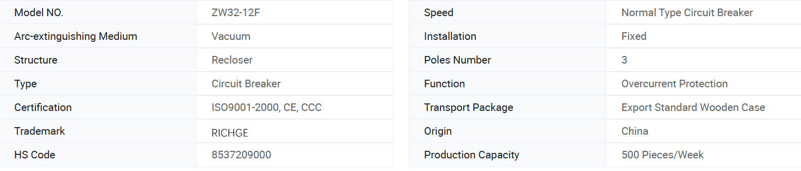 Os disjuntores de vácuo de alta tensão de alta tensão da série ZW32-12 estão em conformidade com o GB 1984 “Disjuntores de circuitos de alta tensão" AC ”e a Comissão Internacional de Eletrotécnica IEC 60056“ Disjuntores de CAC de alta tensão ”e outros padrões.